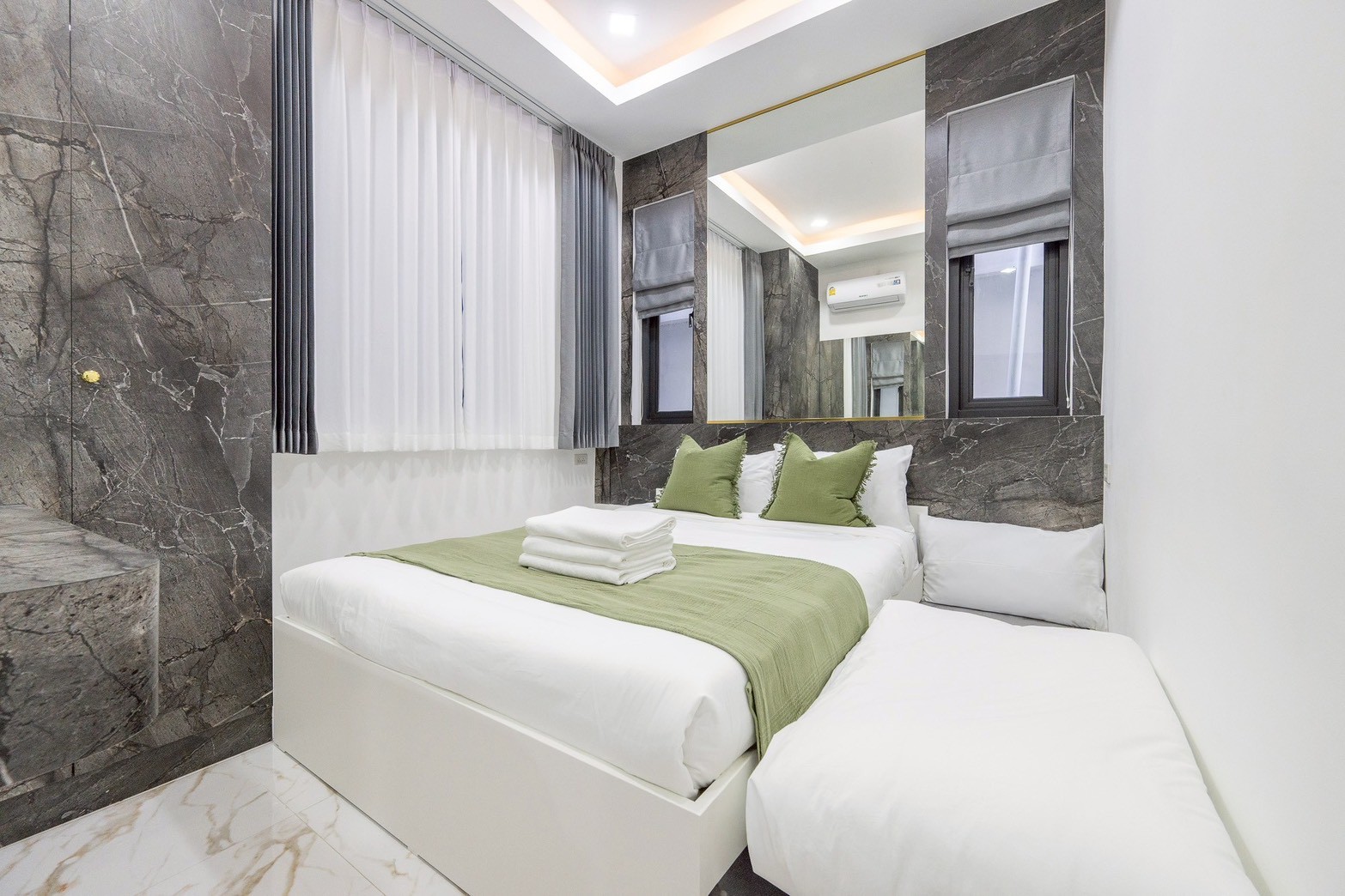 - ห้องนอน3 เตียง 5 ฟุต / เตียง 3 ฟุต (ห้องน้ำในตัว+ห้องนํ้ากลาง)