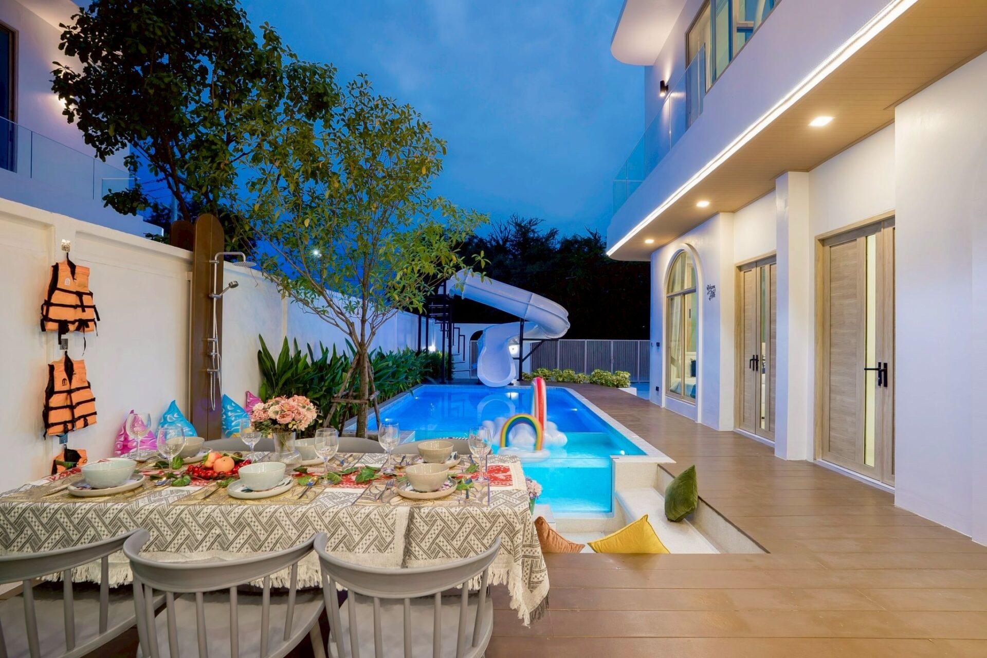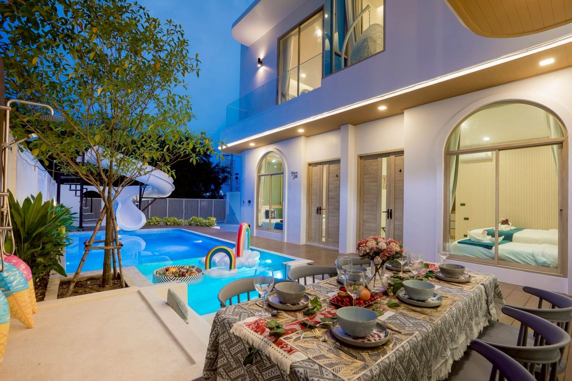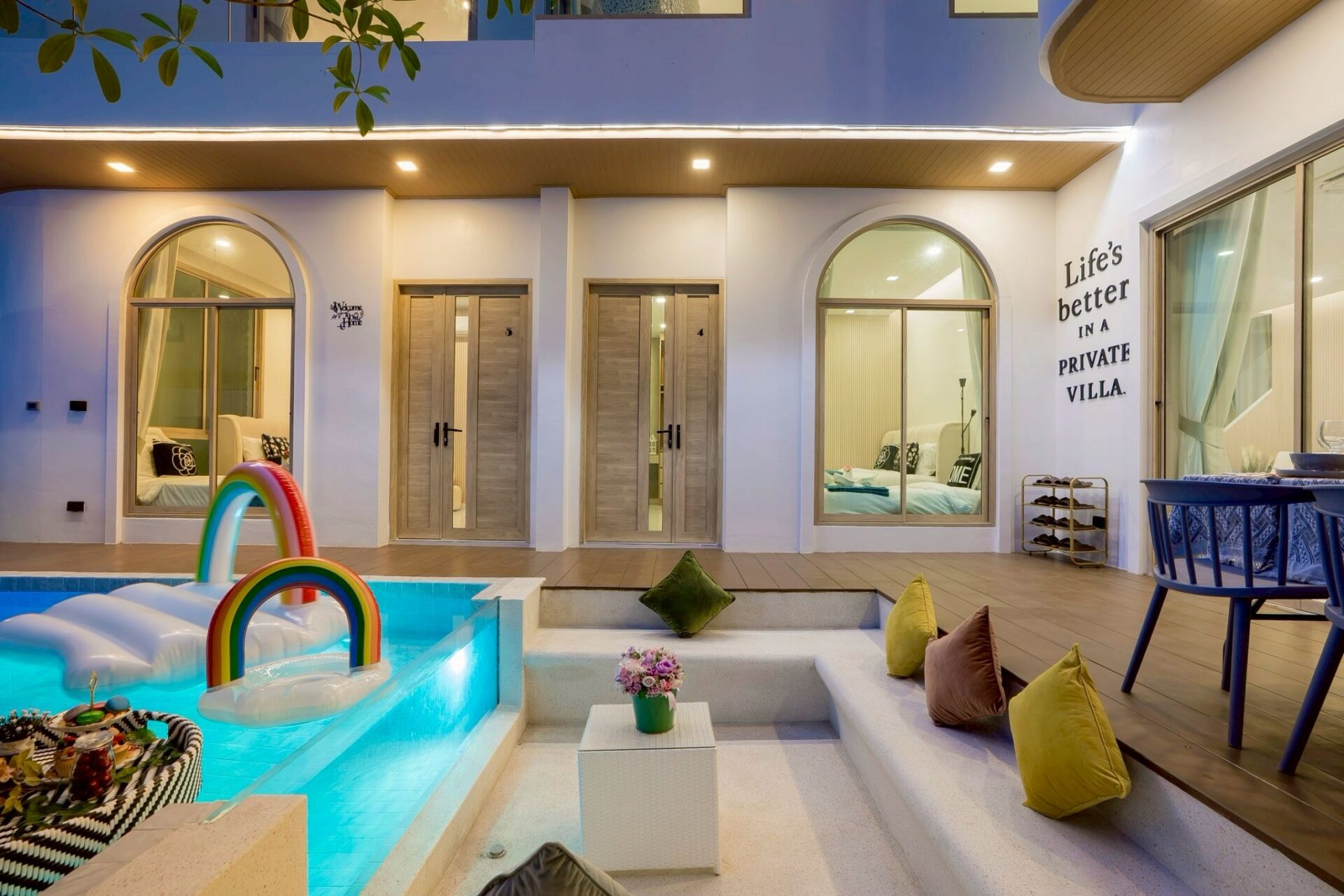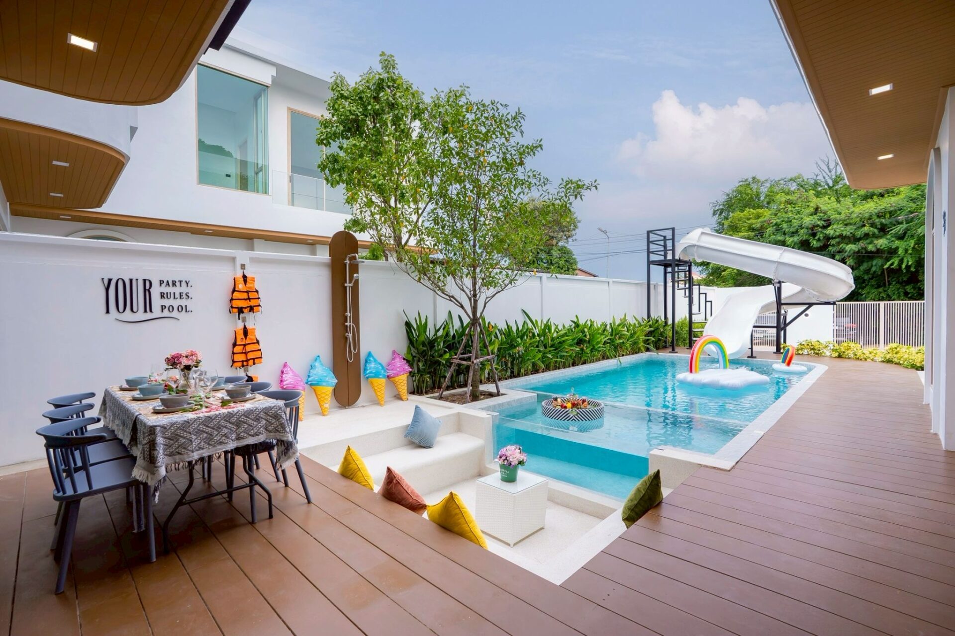 - ห้อง 4 หน้าสระน้ำ เตียง 6 ฟุต 1 เตียง + เตียง 3.5 ฟุต 1 เตียง (มีห้องน้ำในตัว)