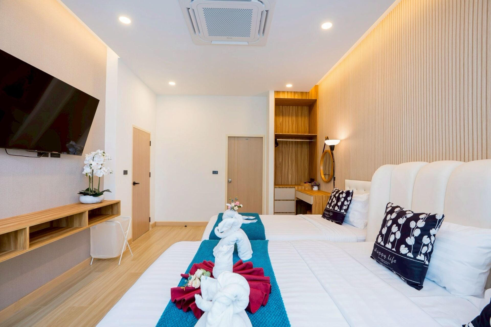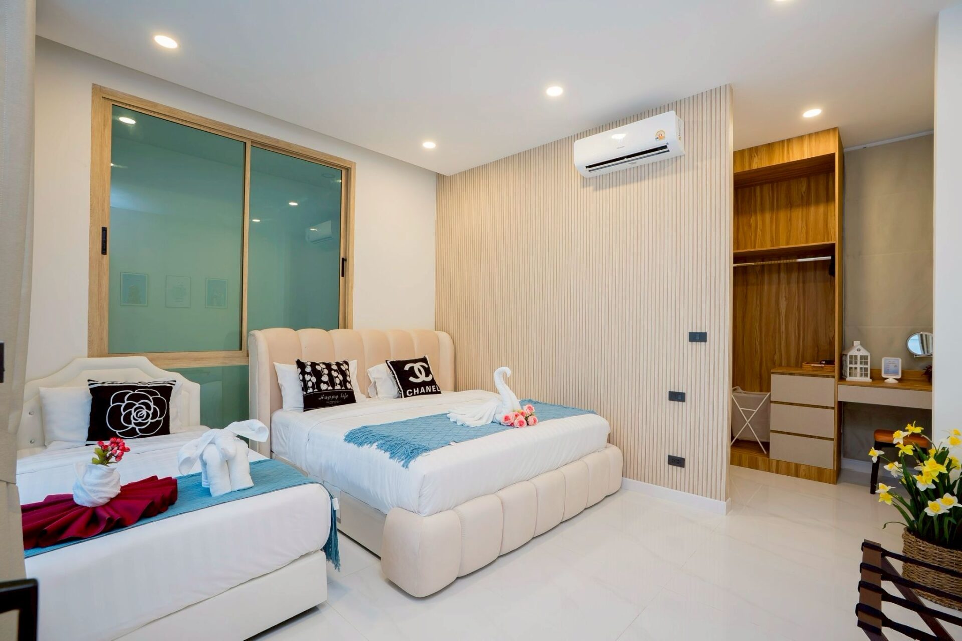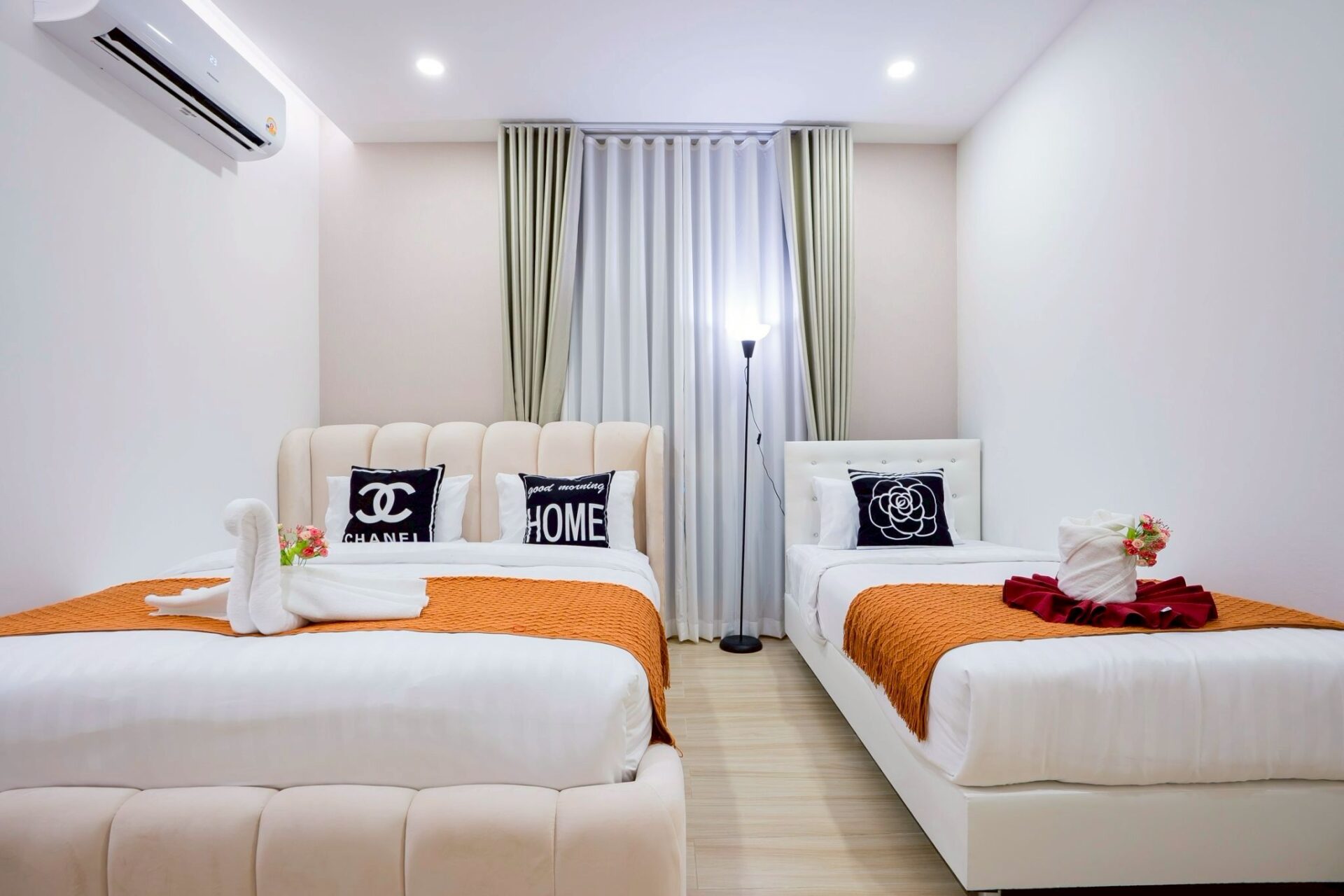 - ห้อง 3 เตียง 6 ฟุต 1 เตียง + เตียง 3.5 ฟุต 1 เตียง (มีห้องน้ำในตัว)