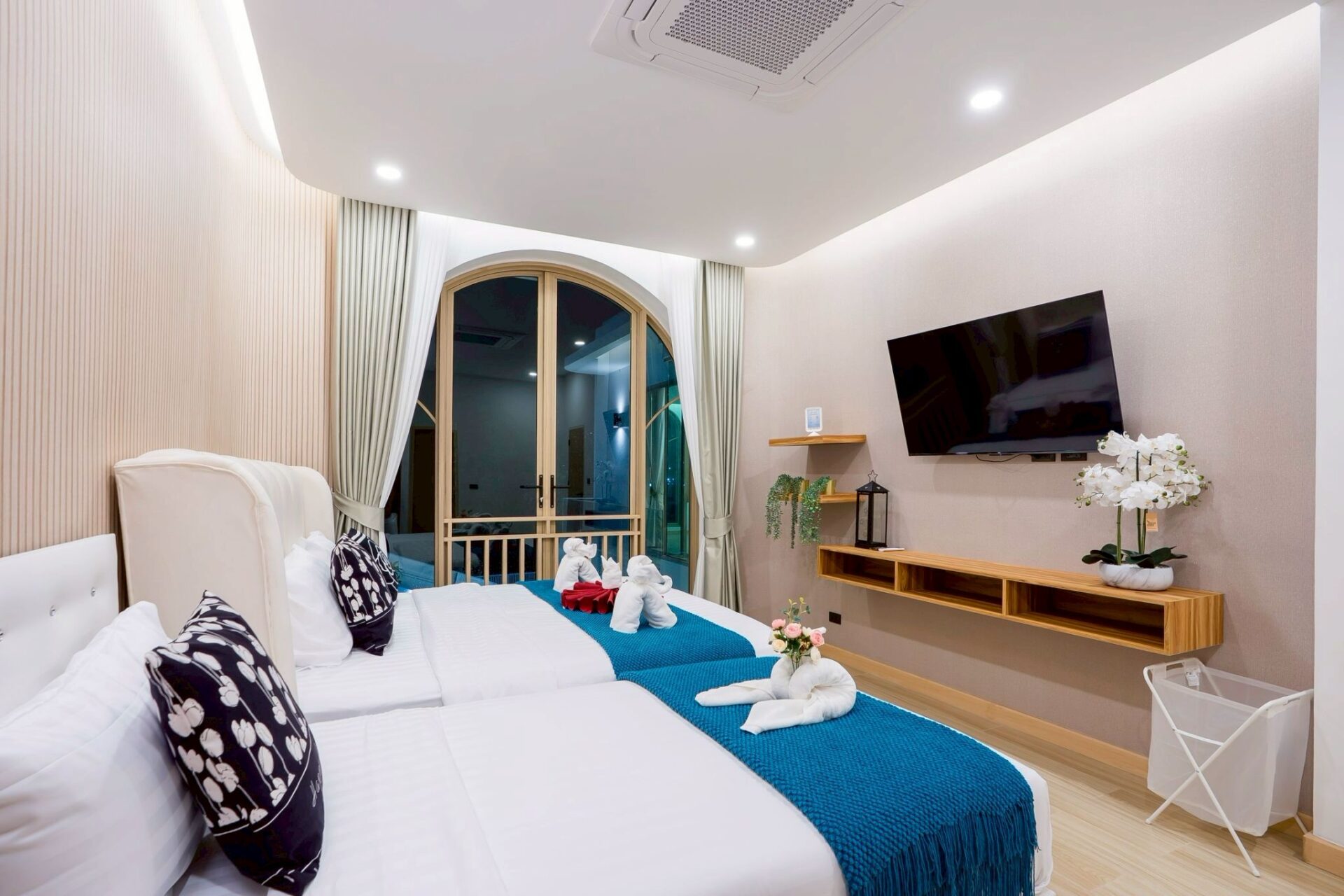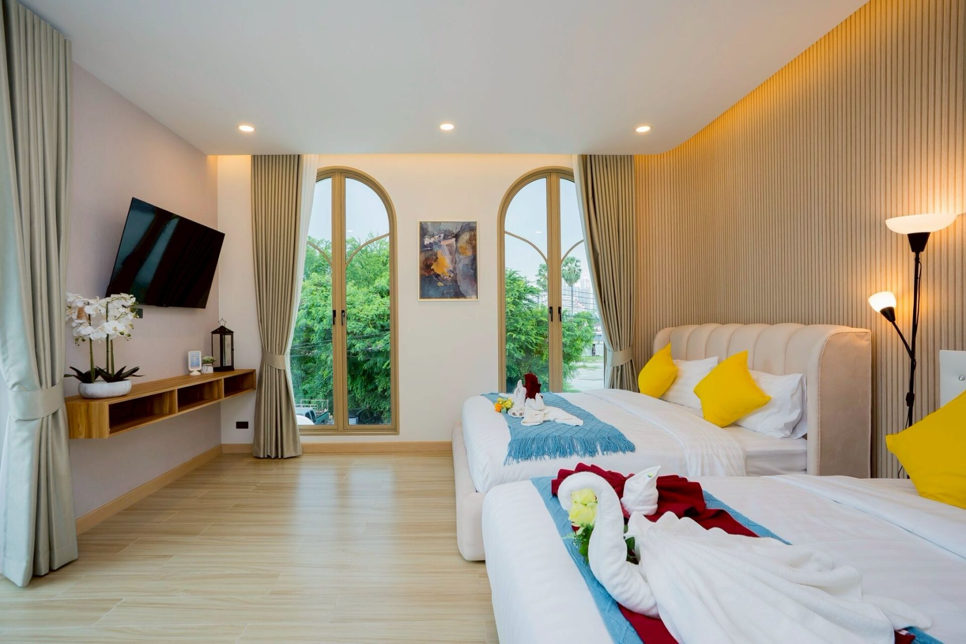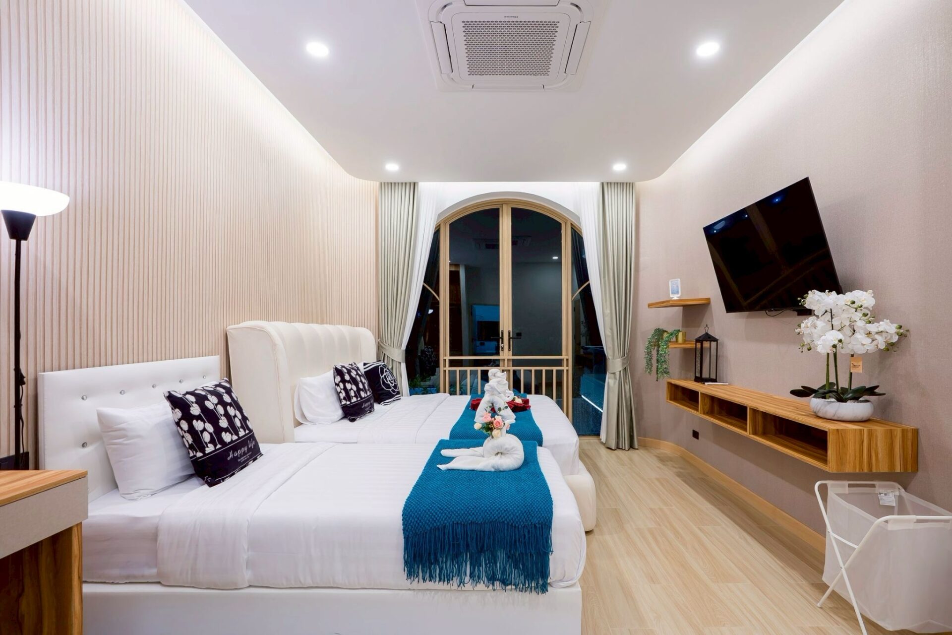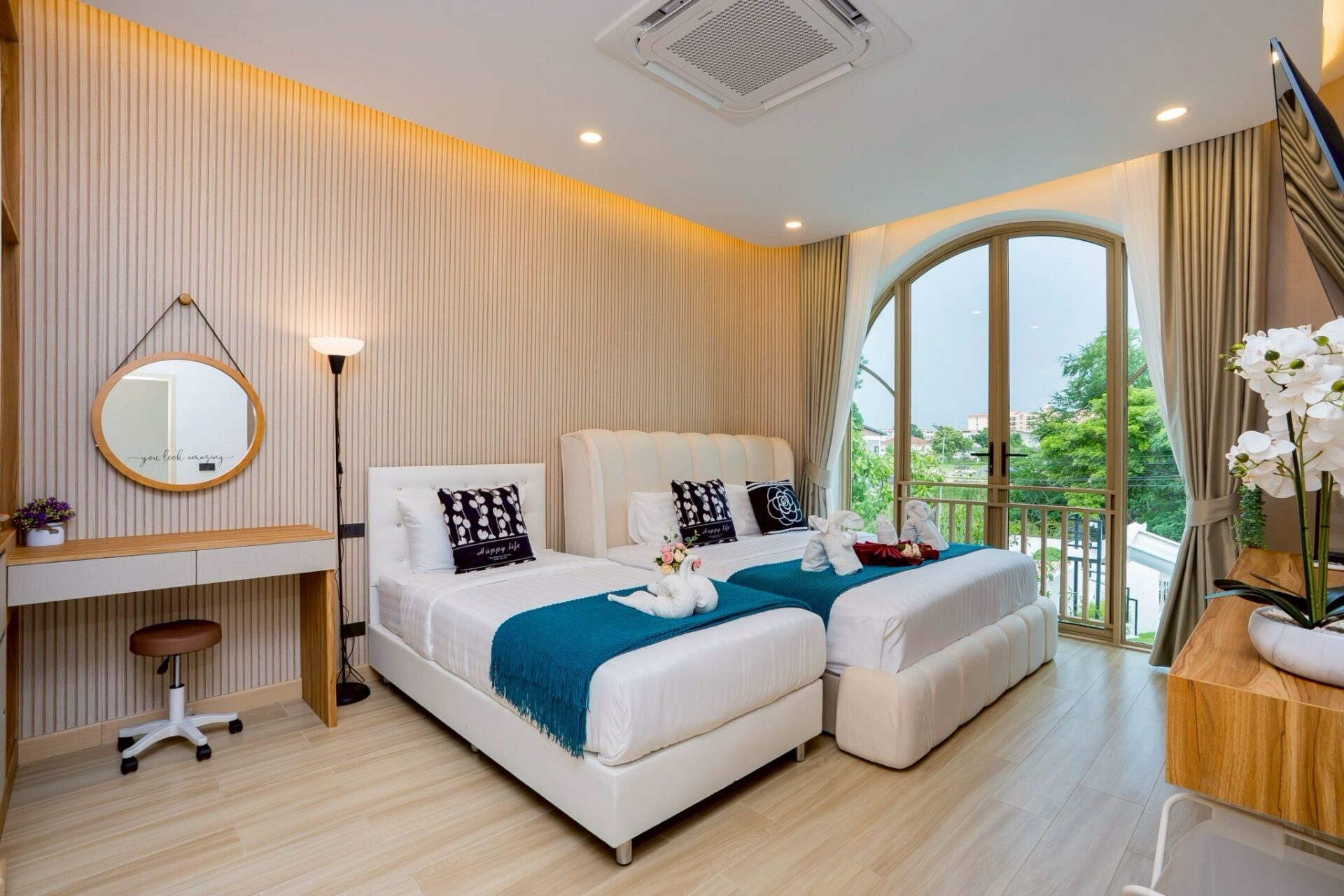 - ห้อง 5 หน้าสระน้ำ เตียง 5ฟุต 2เตียง (มีห้องน้ำในตัว)