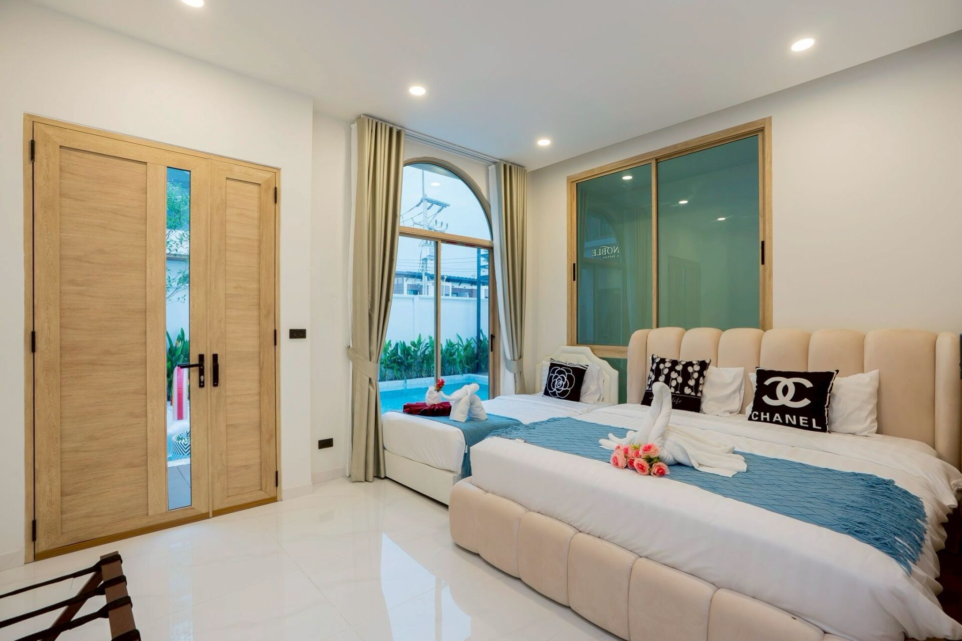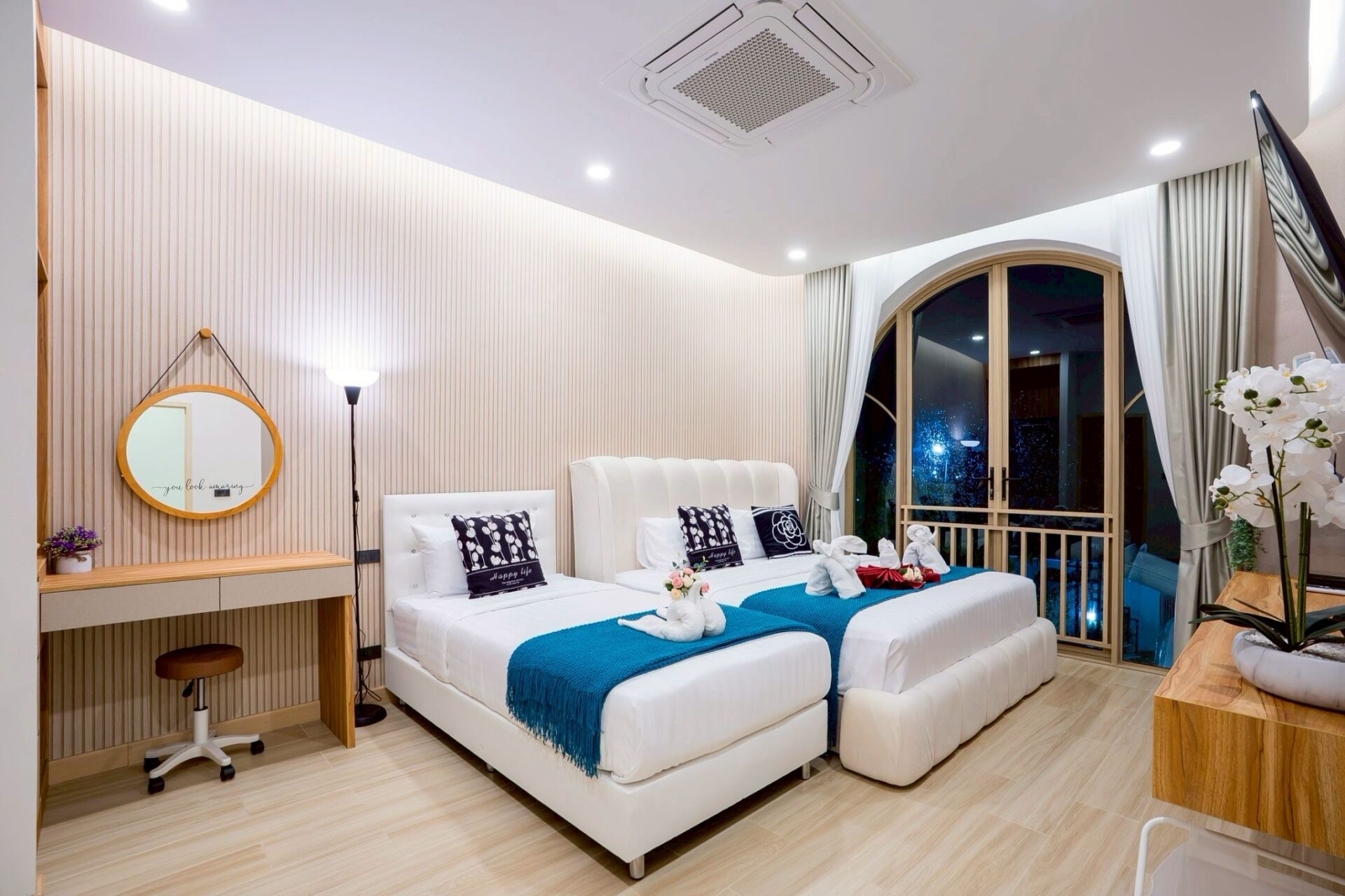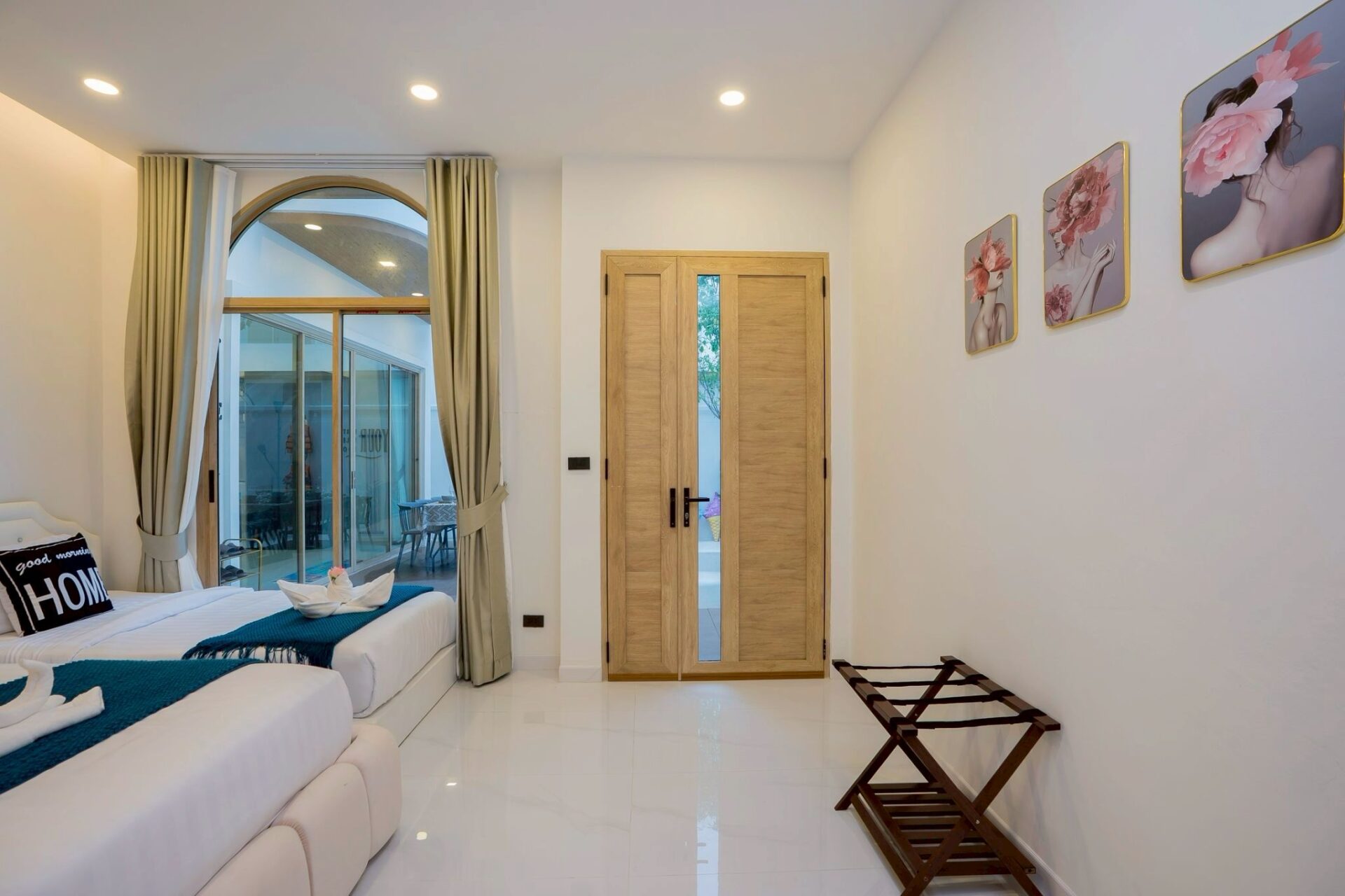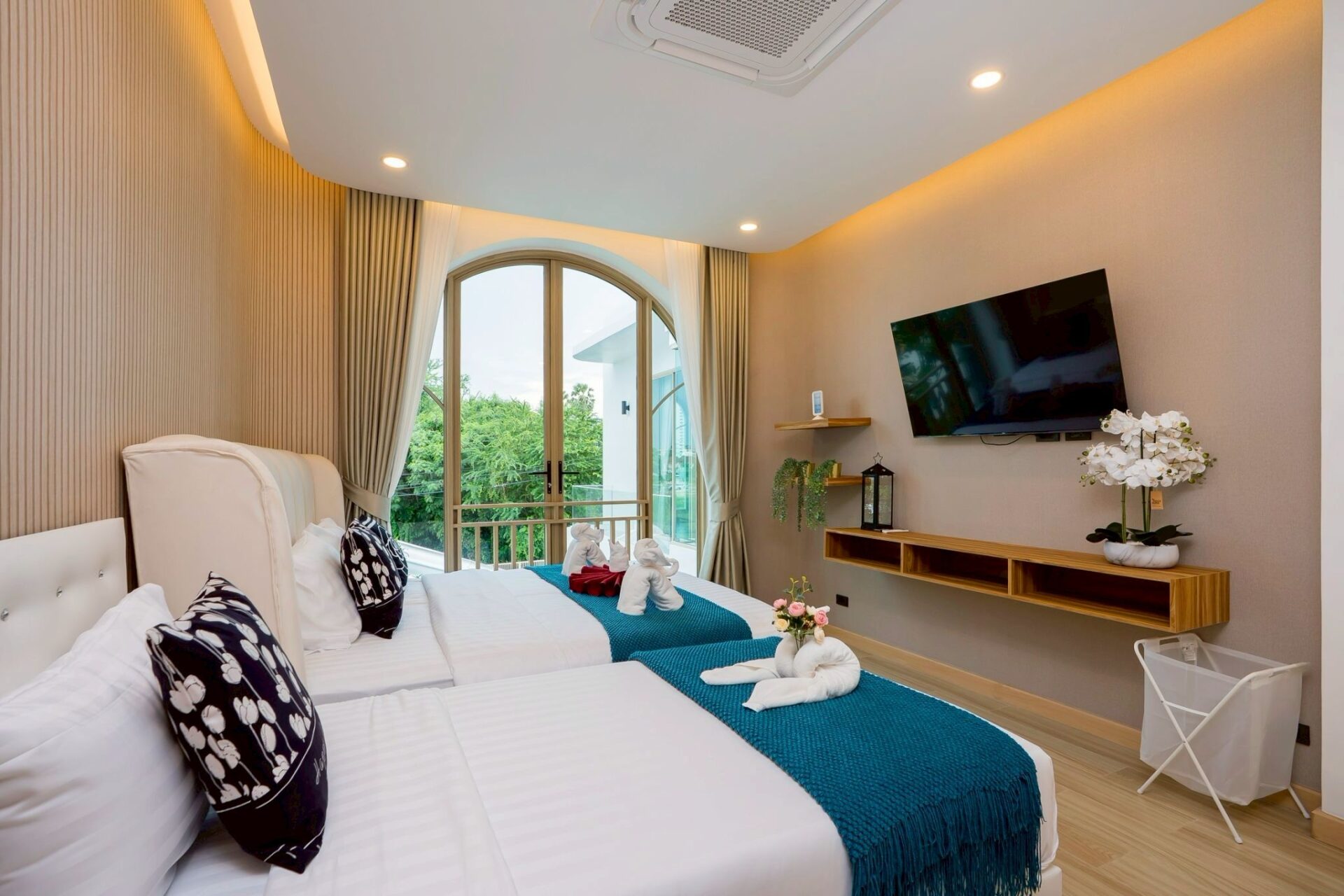 - ห้อง 5 หน้าสระน้ำ เตียง 5ฟุต 2เตียง (มีห้องน้ำในตัว)