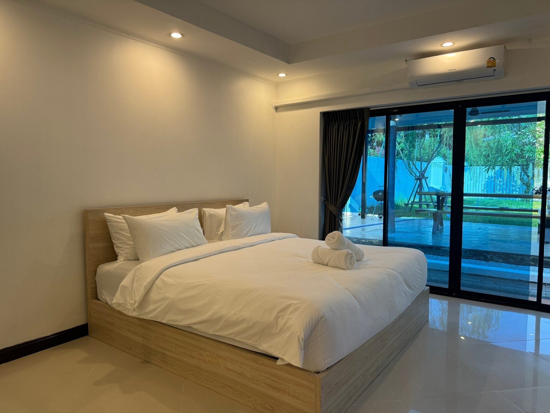 - ห้องนอน 2 มีเตียง 6 ฟุต 1 นอนได้ 2 คน (ห้องน้ำในตัว)