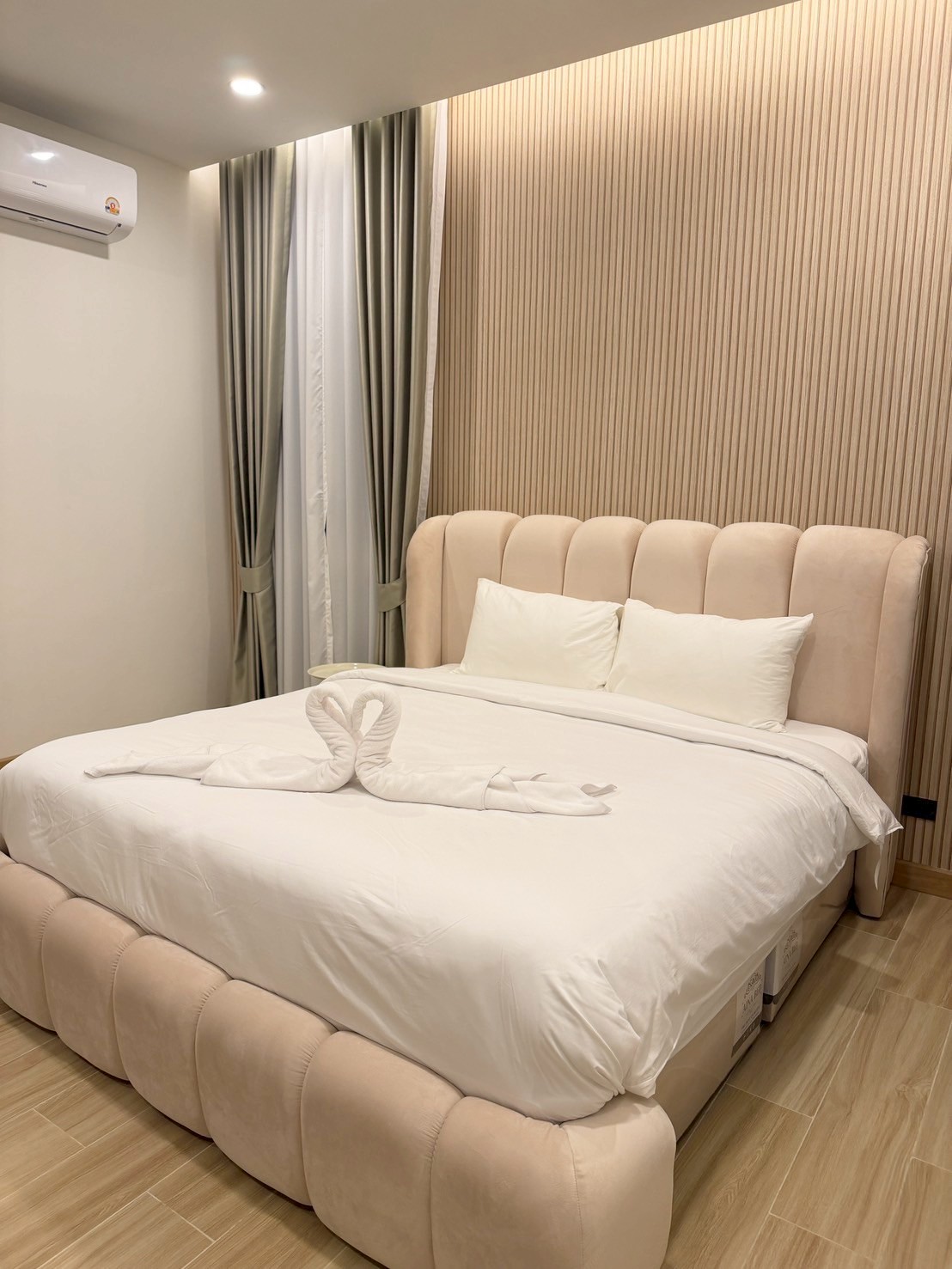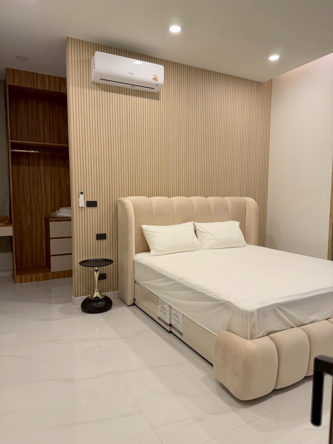 - ห้อง 4 (หน้าสระน้ำ) – เตียง 6 ฟุต 1