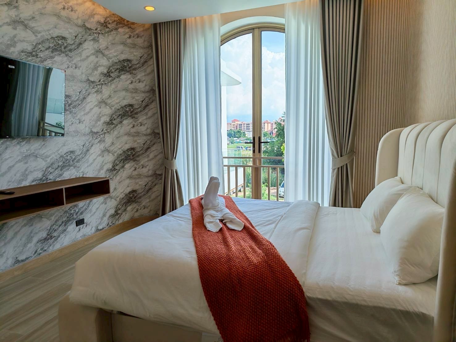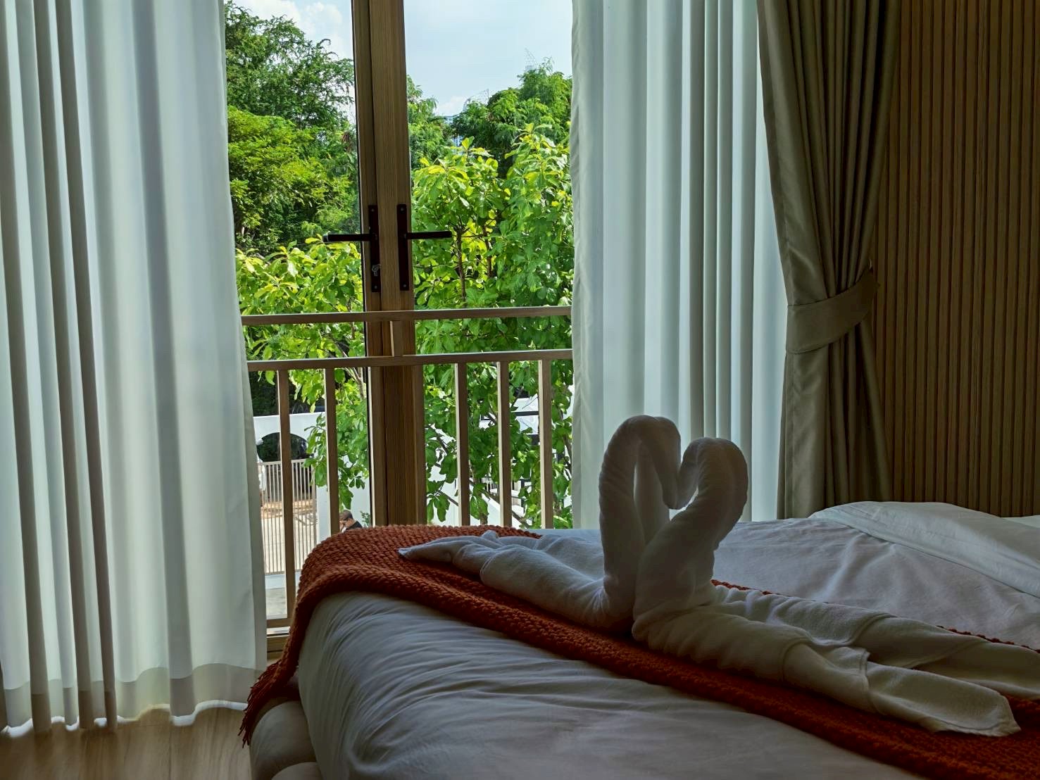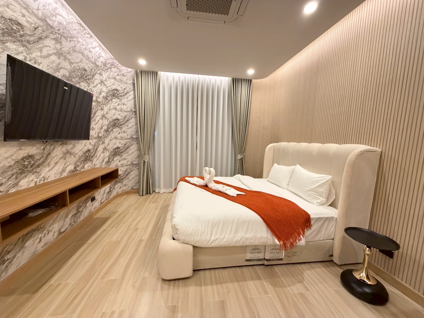 - ห้อง 5 (หน้าสระน้ำ) – เตียง 6 ฟุต 1