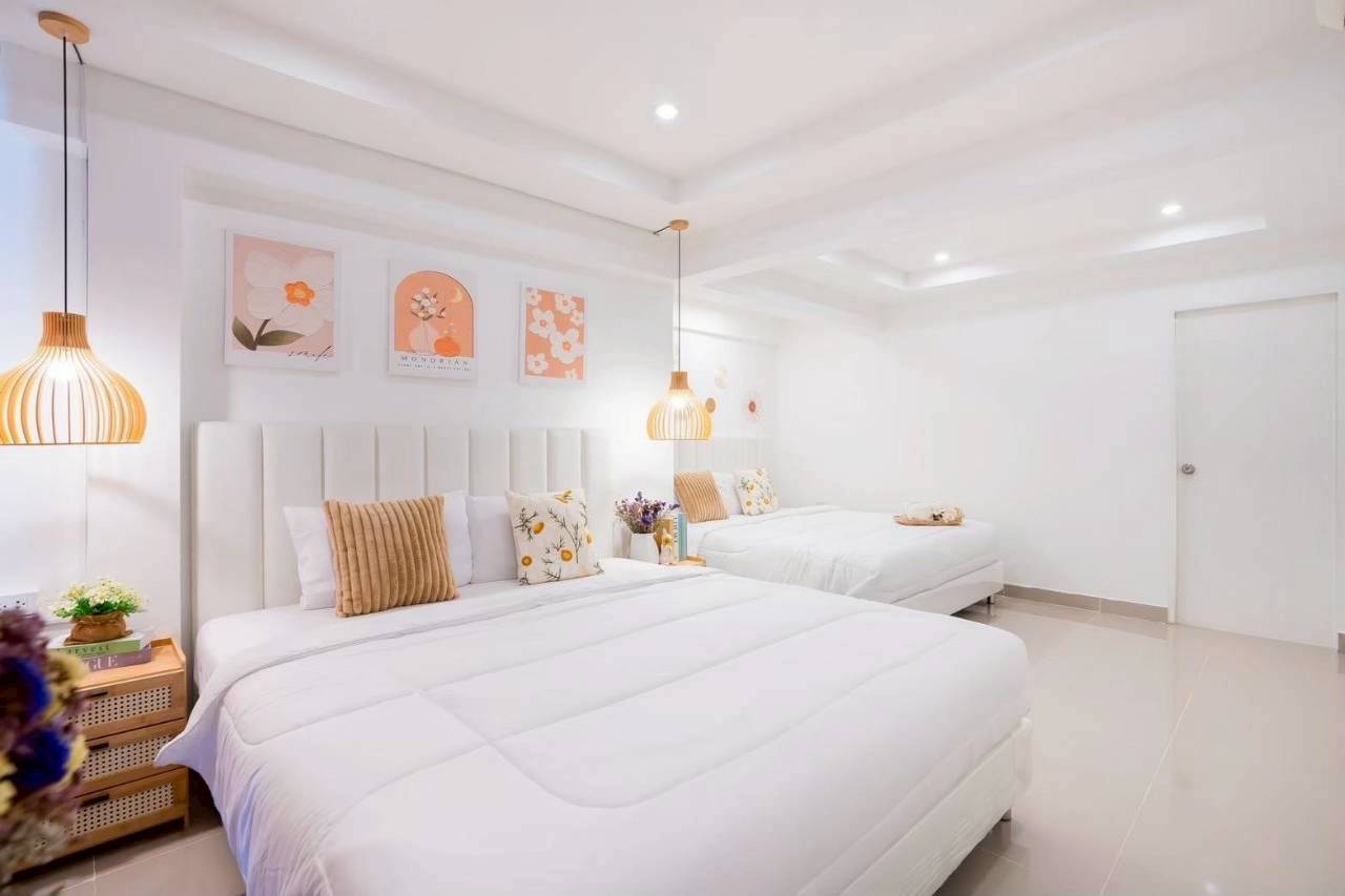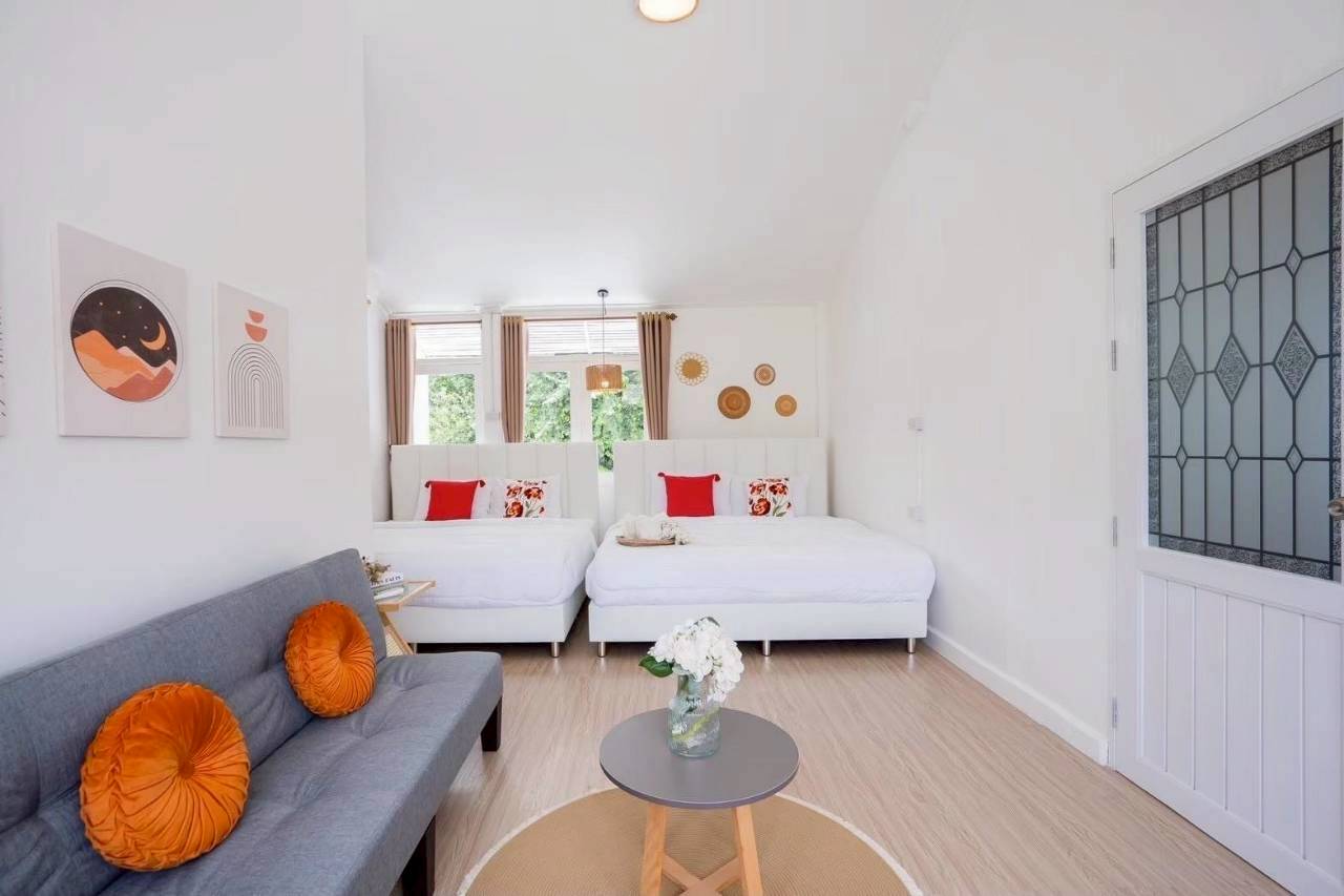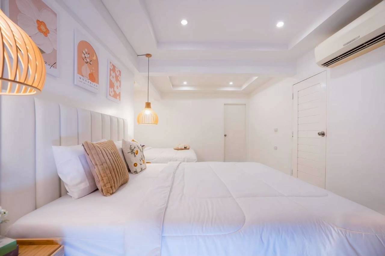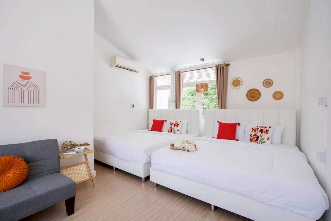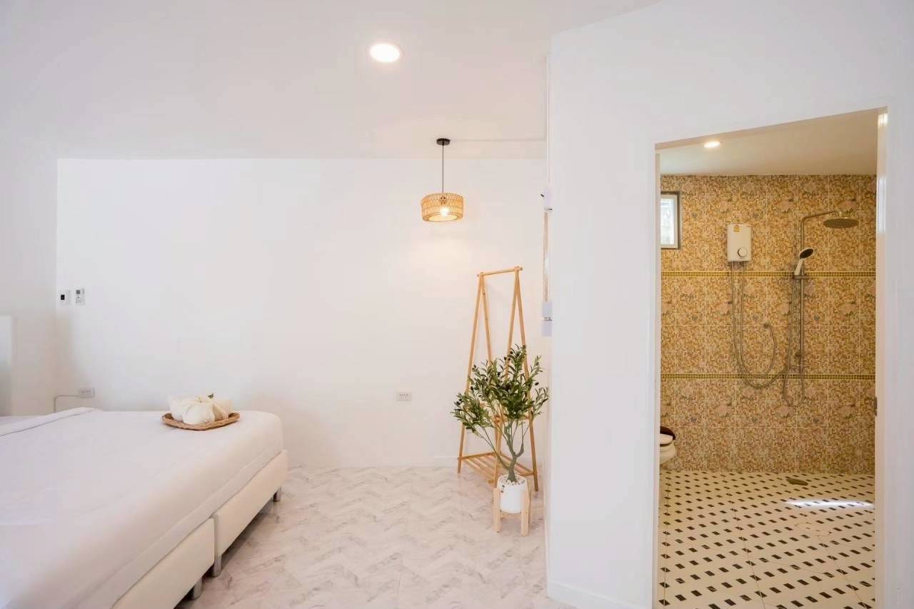 - ห้องที่ 1 ชั้นล่าง : เตียง 6 ฟุต 2 เตียง (มีห้องน้ำในตัว)